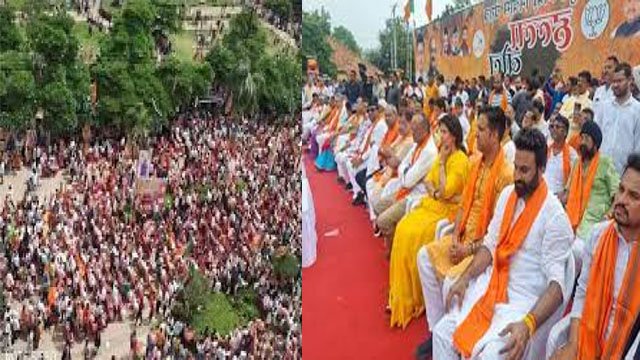 बता दें कि रायपुर में बेरोजगारी को लेकर भाजयुमो का प्रदर्शन लगातार चल रहा है, भाजपा के तमाम दिग्गजों के साथ बड़ी संख्या में कार्यकर्ता सरकार के खिलाफ प्रदर्शन कर रहे हैं। इससे पहले सभा के दौरान नेताओं ने प्रदेश सरकार पर जमकर निशाना साधा। भाजपा प्रदेश अध्यक्ष अरुण साव ने कहा कि जब से छत्तीसगढ़ में कांग्रेस की सरकार आई है, ये मफियागढ़ बन गया है। बड़े-बड़े वादे किए गए थे, लेकिन एक भी वादा सरकार ने पूरा नहीं किया है। सरकार ने लोगों को सिर्फ ठगा है। उन्होंने कहा कि आज छत्तीसगढ़ में कोई पूछेगा कि सबसे बड़ा लबरा कौन है तो ये एक ही नाम आएगा।उन्होने कहा कि 45 महीने बीत गए, युवाओं का 12 हजार करोड़ रुपये का कर्ज भूपेश सरकार लग रही है, नौकरी की पोल तो विधानसभा में खुल गई है, दस लाख नौकरियां देने की बात सरकार ने कही थी, लेकिन युवाओं को ठग दिया है इस सरकार ने। उन्होंने कहा कि 28 अप्रैल 2002 के युवा मोर्चा के आंदोलन के बाद 15 साल बीजेपी की सरकार रही। आज इस आंदोलन के बाद राज्य में तीस साल तक बीजेपी की सरकार रहेगी। इस दौरान भाजपा ने मंच से नारा दिया- ‘फिर एक बार भाजपा सरकार’।वहीं बीजेपी प्रदेश प्रभारी डी. पुरंदेश्वरी ने कहा कि आज छत्तीसगढ़ ऐसे ही धृतराष्ट्र के आलिंगन में है, इसलिए आज सबको भूपेश बघेल से जवाब मांगने जाना पड़ेगा। पुरंदेश्वरी ने कहा कि एक हाथ में गंगा जल लेकर झूठा वादा करने का हिसाब मांगा जाएगा।