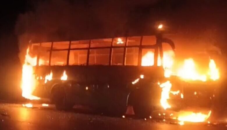 बालोद। बारातियों से भरी चलती बस में अचानक आग लग गई। इससे अफरा-तफरी मच गई। जानकारी के अनुसार, शर्मा ट्रेवल्स की बस क्रमांक सीजी 07 ई 1171 कांकेर जिले के अरौद गांव से बारातियों को लेकर बालोद के बड़गांव जा रही थी। इसी दौरान पुरुर थाना क्षेत्र में जगतरा मंदिर के पास बस में अचानक आग लग गई। राहत की बात यह रही कि बस में सवार सभी लोग समय रहते बाहर निकल गए, जिससे कोई जनहानि नहीं हुई। सूचना मिलते ही पुलिस मौके पर पहुंची और जांच शुरू कर दी है, वहीं प्रारंभिक तौर पर शॉर्ट सर्किट से आग लगने की आशंका जताई जा रही है।