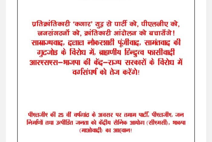जगदलपुर। पीपुल्स लिबरेशन गुरिल्ला आर्मी यानी पीएलजीए के 25 वर्ष पूरे होने पर नक्सलियों की सेंट्रल मिलिट्री कमीशन ने 17 पेज का एक संदेश बुकलेट जारी कर बीते 11 महीने का ब्योरा दिया है। इस बुकलेट के जरिए नक्सलियों ने बताया है कि 2025 में कगार युद्ध ने उन्हें बड़ा नुकसान पहुंचाया है। नक्सलियों को साल 2025 में सबसे बड़ा नुकसान हुआ है, उनके बड़े लीडर इसी साल मारे गए। नुकसान का अंदाजा इसी बात से लगाया जा सकता है कि सेंट्रल कमेटी के 8 सदस्य जो अपने-अपने क्षेत्र के बड़े लीडर थे, वे अलग-अलग मुठभेड़ में मारे गए। हालांकि नक्सलियों ने यह भी कहा है कि उनका आंदोलन जारी रहेगा। बताया गया कि पिछले 11 महीने में देशभर में उनके 320 साथी मारे गए हैं। इनमें 8 सेंट्रल कमेटी के सदस्य हैं, जबकि 15 राज्य समिति मेंबर्स हैं। पोलित ब्यूरो मेंबर और महासचिव बसवा राजू के एनकाउंटर को नक्सल संगठन ने सबसे बड़ा नुकसान माना है। नक्सलियों ने 2 से 8 दिसंबर तक पीएलजीए की 25वीं वर्षगांठ मनाने की बात कही है।