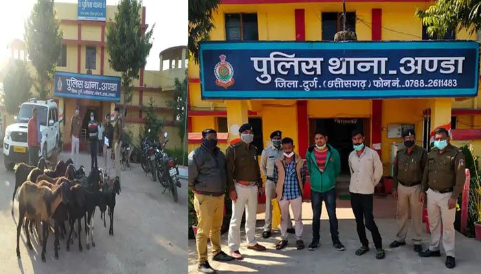 दुर्ग। दुर्ग पुलिस ने बकरी चोर गिरोह का पर्दाफाश कर तीन आरोपियों को गिरफ्तार किया है। आरोपियों के कब्जे से 32 भेड़ और बकरी बरामद हुई है। इन्हें कबीरधाम और दुर्ग जिले के पाटन से चोरी किया था। गिरोह के सरगना भगवान दास जोशी उर्फ खरगोश 23 वर्ष ने बताया कि वह कई सालों से बकरी चोरी करने का काम करते आ रहे हैं।आरोपी ने बताया की अब तक कई हजार भेड़ और बकरी चोरी कर उन्हें बेचा है। वह लोग हर दिन बकरा पार्टी करते थे और पिछले दो सालों में एक हजार से अधिक बकरा खा चुके हैं। अंडा थाना प्रभारी श्रुति सिंह ने बताया कि ग्राम निकुम में से आए दिन बकरी चोरी होने की शिकायत मिल रही थी। आरोपियों को पकड़ने के लिए पुलिस ने मुखबिर को अलर्ट किया। 17-18 जनवरी की दरमियानी रात जब पुलिस गश्त पर थी तो उन्हें जानकारी मिली कि पुरानी बस्ती निकुम से फिर कुछ लोगों ने 13 भेड़ व 1 बकरी को चोरी कर लिया है। पुलिस ने आरोपियों को पकड़ने के लिए क्षेत्र के आसपास के सैकड़ों सीसीटीवी फुटेज को खंगाला। पुलिस को मुखबिर से सूचना मिली कि भिलाई नगर रेलवे स्टेशन के पास रहने वाले आरोपी खरगोश अपने 2 साथियों के साथ मिलकर बकरियों के बेचने के लिए ग्राहक तलाश रहा है। पुलिस ने तीनों आरोपियों को हिरासत में लिया। पूछताछ में उन्होंने अलग-अलग जिलों से बकरी चोरी करना स्वीकार किया। पुलिस ने तीनों आरोपी भिलाई नगर निवासी अरुण कुमार, भगवान दास जोशी उर्फ खरगोश और मोहम्मद इशाक को गिरफ्तार कर न्यायिक हिरासत में भेज दिया है।