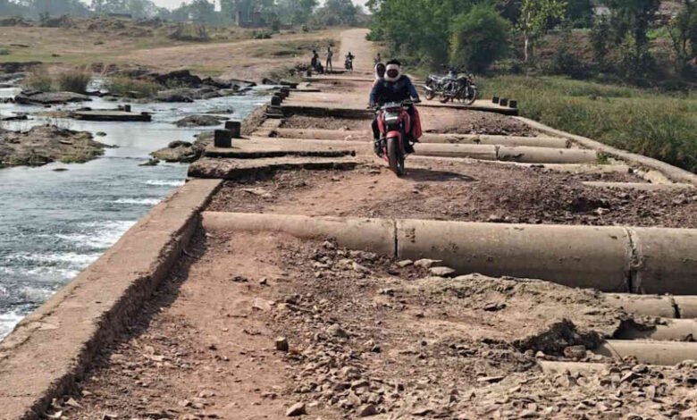 दो जिलों को जोड़ने वाले रपटे की हालत जर्जर, ग्रामीणों को होती है परेशानी