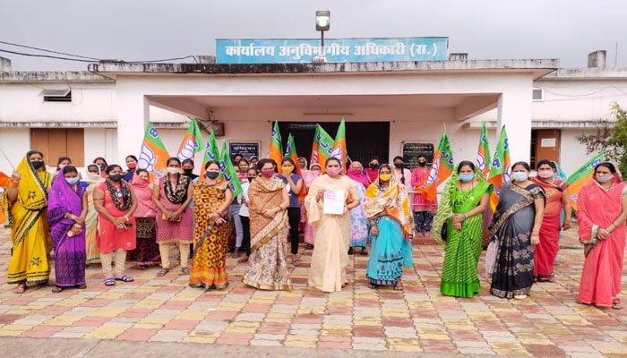 कुरूद में 7 वर्षीय बच्ची से रेप करने वाले आरोपी को फांसी देने की मांग को लेकर महिला मोर्चा ने राज्यपाल के नाम एसडीएम को सौंपा ज्ञापन